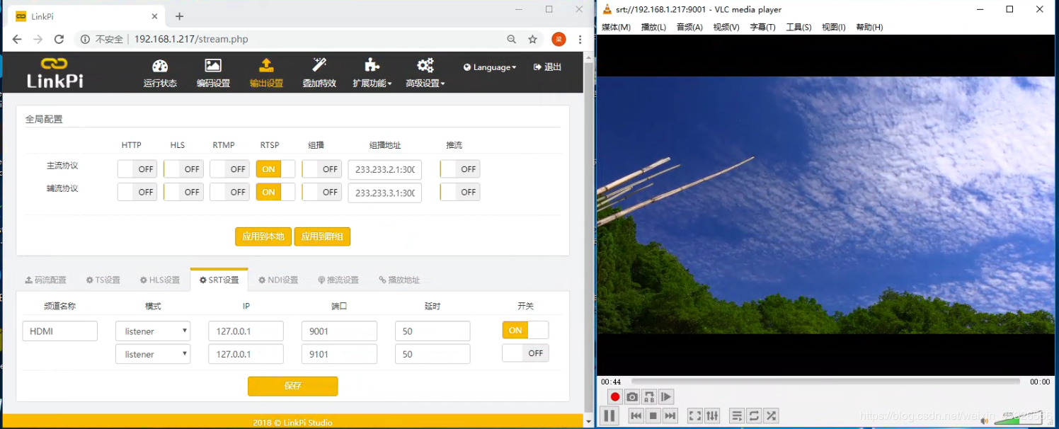 VLC虽然很方便,但仅仅支持SRT caller模式,而且延迟很大,但如果对延迟无要求也是不错的选择。